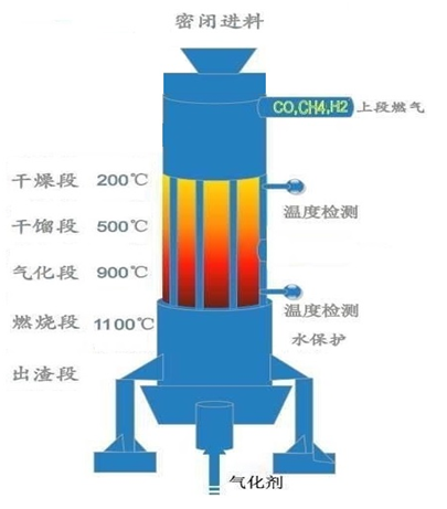 反應原理 :有機固體廢棄物+熱量,在無氧/貧氧狀態(tài)下,生成可燃氣+爐渣。