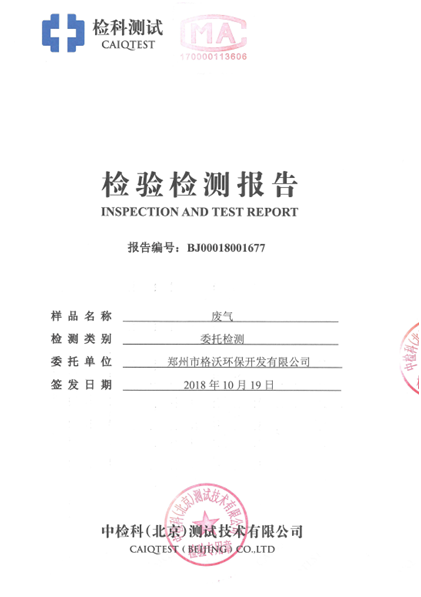 氣化殘渣重金屬檢測遠低于國家標準 (見檢驗報告)
