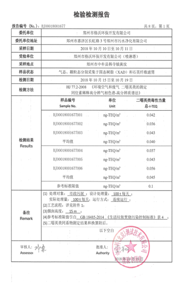 二噁英檢測報告
