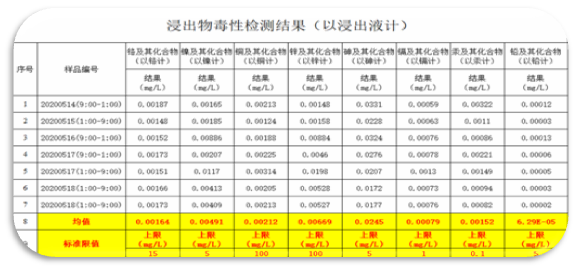 經(jīng)高溫氣化處理后的爐渣浸出液做重金屬檢測,含量低于國家《城鎮(zhèn)污水處理廠污泥處置單獨焚燒用泥質(zhì)》標準(CJ/T290-2008),可用作路基材料或者制作免燒磚。